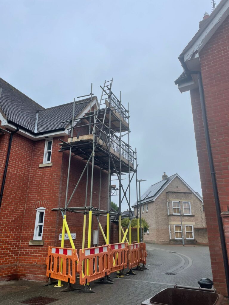 For this recent job, SAC Scaffolding installed a comprehensive scaffold in Colchester to allow safe access for painting the fascia and soffits. Our team designed and erected a stable, weather-resistant structure that permitted the roofers to work efficiently at height, while also enabling the painters to reach all external timber work cleanly and securely. With careful planning, regular safety checks, and unobtrusive setup, we ensured the project ran smoothly from start to finish — delivering peace of mind to both homeowner and trades.